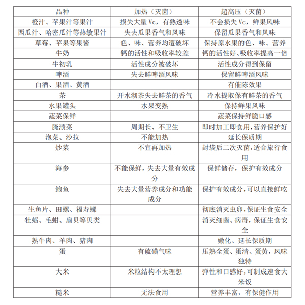 超高壓食品加工是最近10幾年發(fā)展起來(lái)的高新技術(shù)。它在常溫條件下通過(guò) 300-600MPa(3000-6000個(gè)大氣壓)對(duì)食品進(jìn)行加工并使之“熟化”、滅菌、滅病毒、滅蟲(chóng)卵、改善食品品質(zhì)和口感、進(jìn)行有效成分提取等。與傳統(tǒng)的熱加工相比較,超高壓加工在保證食品安全的情況下,最大限度地保護(hù)食品原有的營(yíng)養(yǎng)成分、活性成分和生鮮風(fēng)味,同時(shí)節(jié)能90%以上,因此,它還被稱作“適度加工” 技術(shù)。超高壓技術(shù)(HPP)作為食品加工領(lǐng)域的創(chuàng)新手段,已廣泛應(yīng)用于以下品類:
